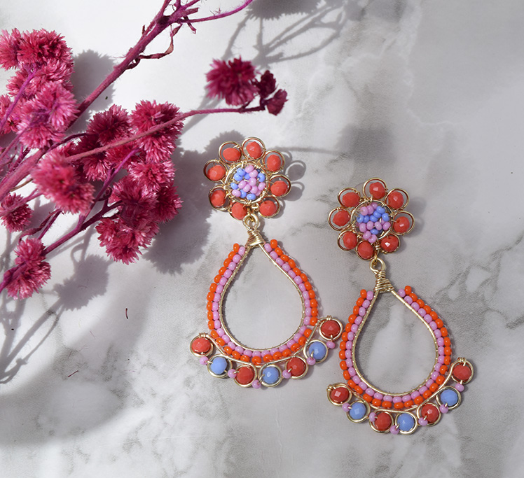 Candongas Flores: Aretes Artesanales Elegantes con Diseño de Mostacilla